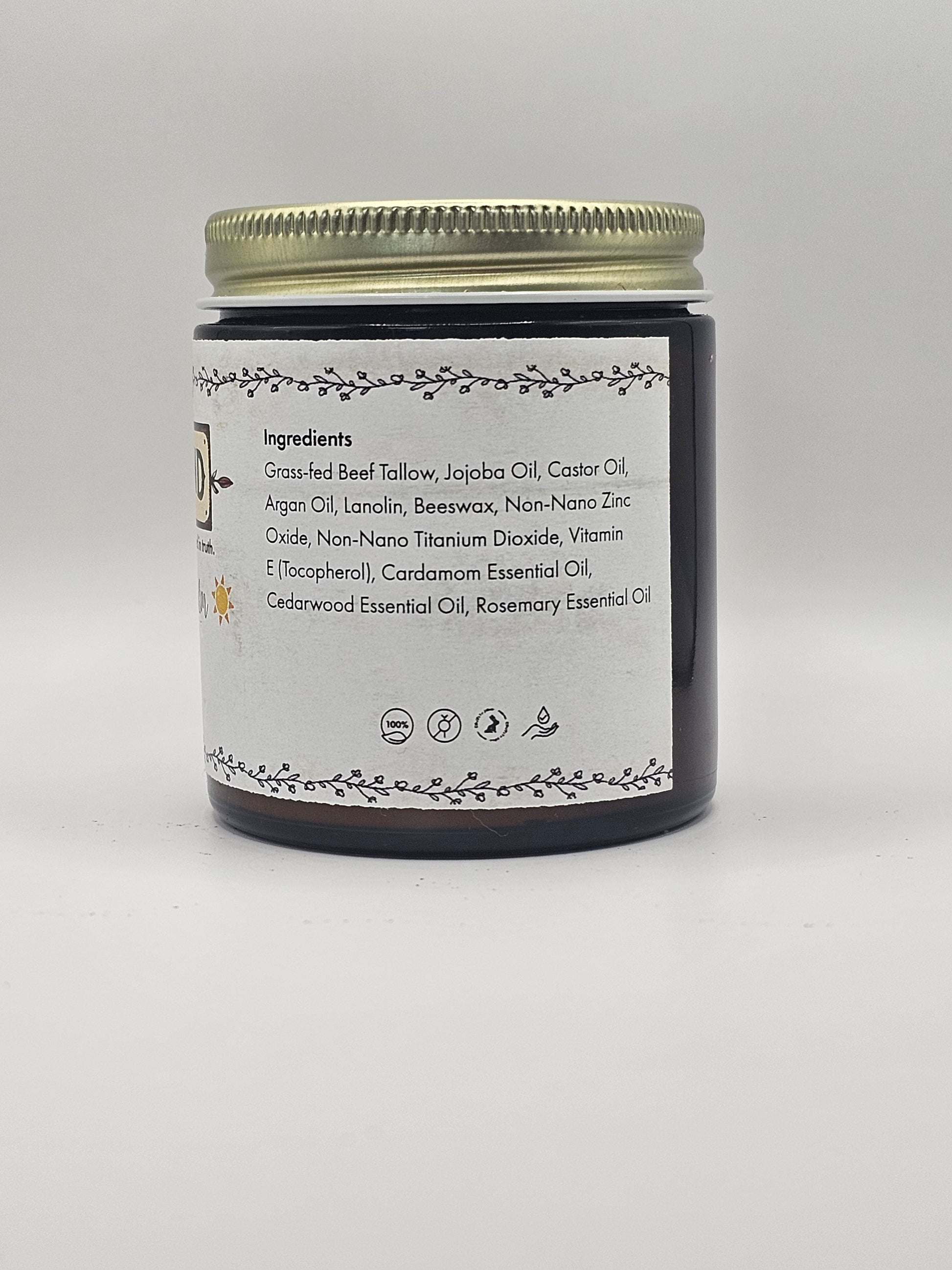 Protect and nourish your skin naturally with Sun Balm, a proven mineral defense powered by non-nano zinc oxide, free from chemical sunscreens. A supportive blend of grass-fed tallow, beeswax, and lanolin keeps skin smooth and moisturized under the sun, while our small-batch process ensures purity you can trust. Safe for kids, easy to apply, and perfect for pool days, hikes, or everyday time outdoors.